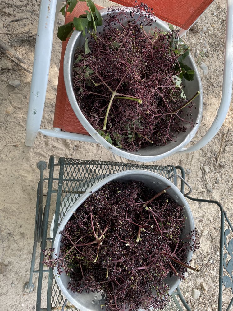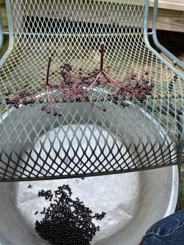 We were discussing elderberries on BYH and @Simpleterrier chimed in and said to rub the bunches through 1/2”X1/2” hardware cloth. What a great idea! I walked past the lawn chairs, going to go get a piece of hardware cloth, which I’m sure would work splendidly, but turned around. I have metal lawn chairs, so used one of them. It sure speeded things up!