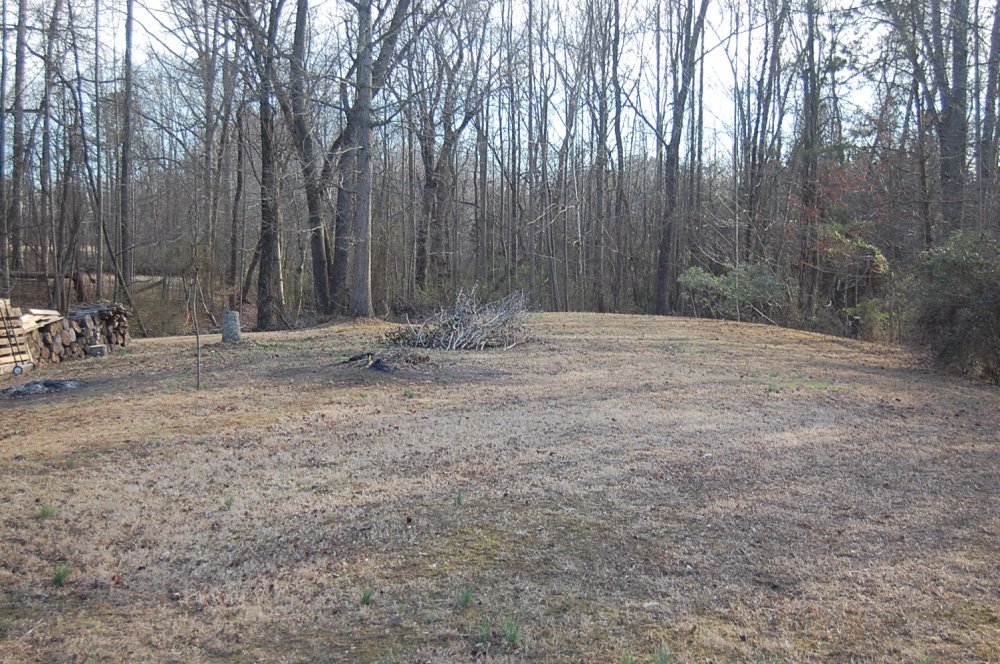 use to grow corn in till the tress got to high, while tilling it found a arrowhead it was not whole but still you could see the makings of it being worked. well today right about where the stick is standing up to the left raked up the shell. picked it up cleaned it off you could see that it's been there for a long time, stopped what