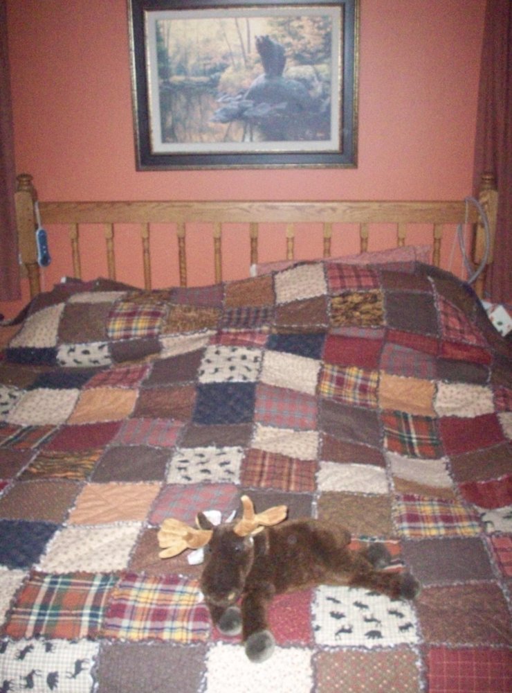 Hey Carol, is that a flannel rag quilt? I like it! I made a small one, and now have the flannel to make a larger, more manly one. There is just so much lint and fuzz that was inhaled while cutting and sewing. Ugh!I have been collecting fabric and patterns for YEARS> I guess retirement will find me with plenty to do! Mostly I make cards, knit or croquette. A few VERY basic quilts. This was the BIG one I did for the king size bed. View attachment 26471