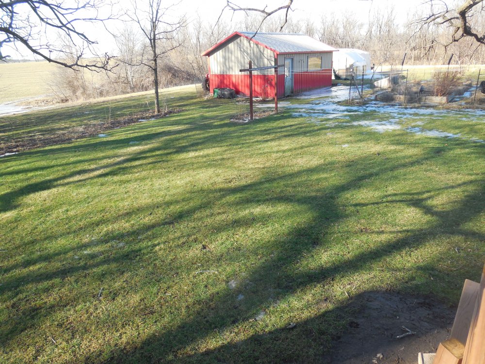 If I took photos on Sunday, almost all the ice touched by the sun would be a memory. Check out the glare ice in front of the garden shed. In the shade there will still be ice, but very little. The grass is already green since we got our first snow well before the grass had turned brown in the fall. Indeed, we could have been mowing in December.