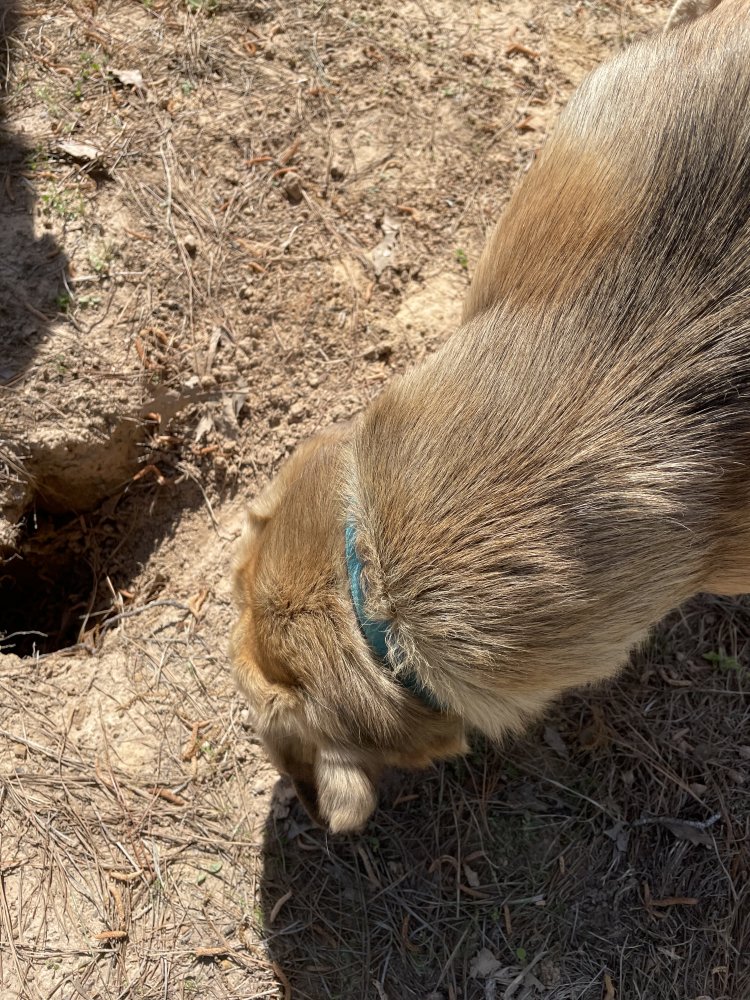 I suppose there is an armadillo down this hole and that’s what the dogs are madly barking at in the 3 AM time frame. This is in the pasture, not the night pen, or there might be armadillo snacks.