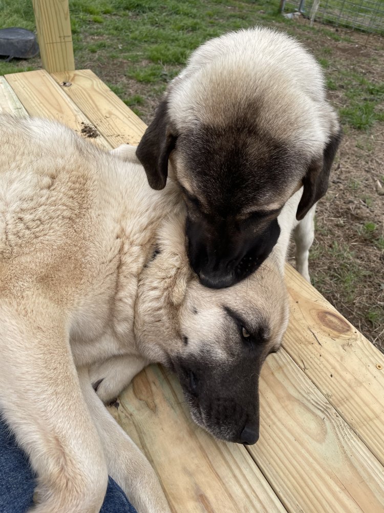 I’d like to get an Anatolian when Fen is mature. My Maremmas both passed away in the last year, and raccoons immediately slaughtered all my poultryI built a platform for the dogs. I’ll be moving the ram into a pen that I put Buford in overnight. I have 2 night pens, one has lambs in it and I can’t let Buford overnight there. So it looks like he will have to share with the ram. The ram wasn’t raised with dogs and will butt them. Cooper the ram has been in the front yard with Carson, but Carson could jump on the porch to get away from Cooper.