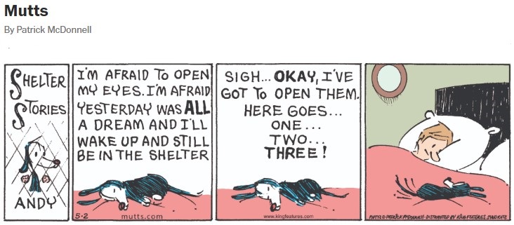 The two new comers have been here now for 3 weeks. We've gone to the vet for checkups and vaccinations. I do think, like the pup in the cartoons, that when we entered the vet clinic they feared they were going to be switching homes again. Not a surprising conclusion to draw, given their recent history of home to rescue, rescue to foster home, and then to my house, but when we pulled into the garage and they realized they were at the same home again, they both relaxed.