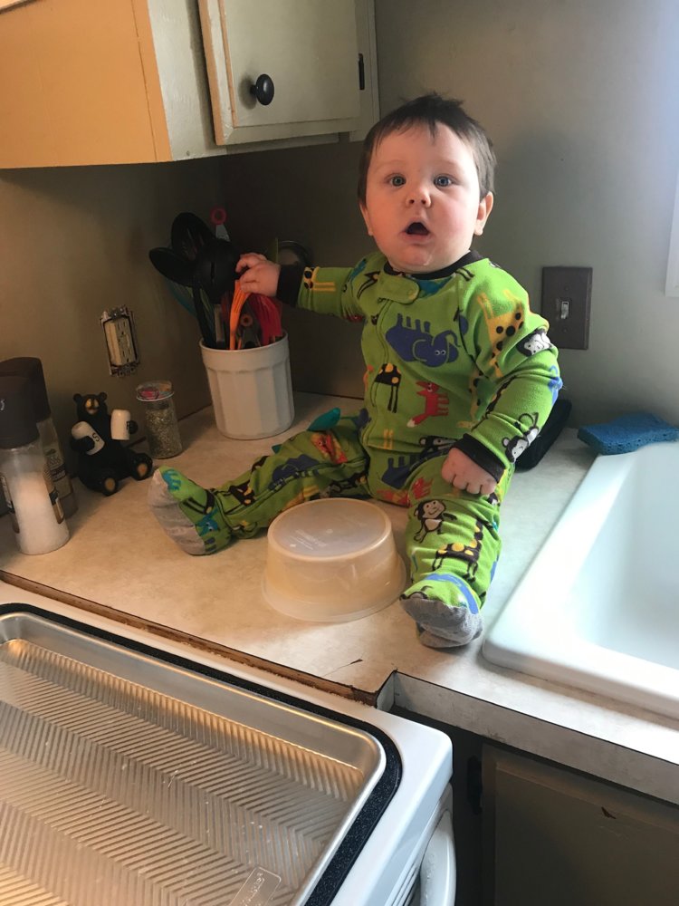 Here he is helping his momma bake cookies at his great aunts house.