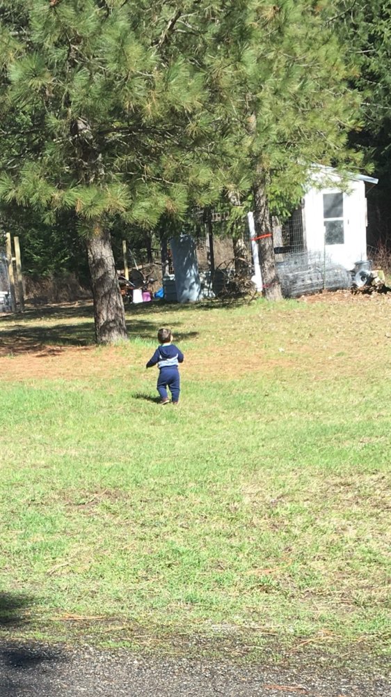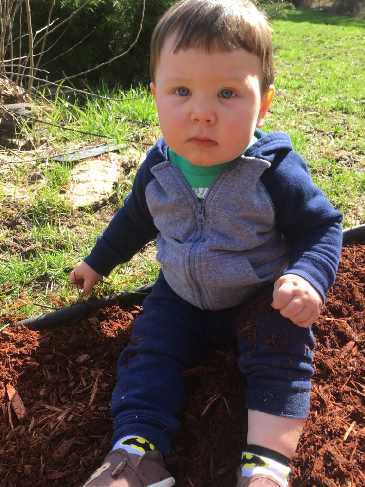 The first picture is from the place we had his Easter pics taken. They used live rabbits he was determined to pet each rabbit in the studio.second pic he is playing in the fresh bark along the sidewalk. Picture 3 is Thomas heading out to the chickens one of his favorite activities. Picture 4 is Thomas eating dirt in the greenhouse lol. It took a while to break him of putting dirt in his mouth. He is 14 months old now and he is constantly on the move, and hard to keep up with. I never have a bad day with my grandson, he is a perfect wingman for me.