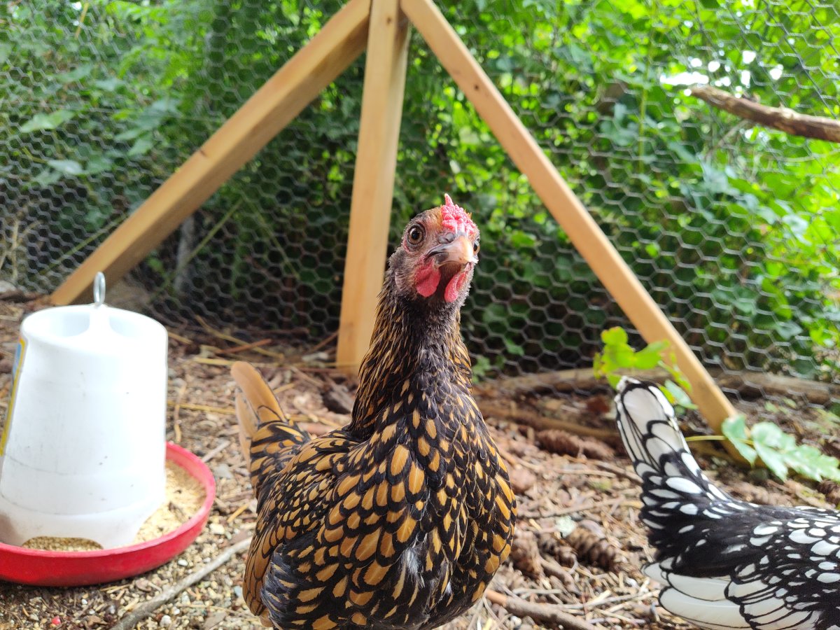 We're working on putting sit to a verbal command. I think it must be hard for chickens to distinguish a verbal command. They're very responsive to visual cues but not so much the verbal cues so far View attachment 58083