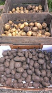 the peaches did really well this year. Orange cherrytomatoes. 1st part of the potatoes this year: Blue de la Manche and 'Casa Blanca' in the back.
