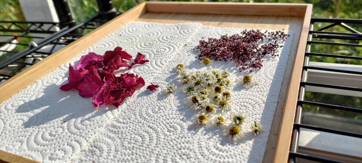 Steve, I used rose petals instead of rose hips, but rose petals also work well with chamomiles. The rose season will start soon, and the temperature will remain high. Today, the west-facing side was about 35 degrees C, and inside the greenhouse reached 45~50 degrees C in the afternoon for hours!