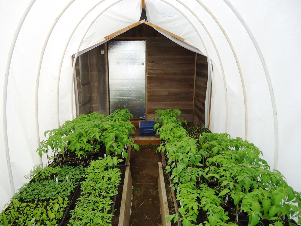 I'm not worried about the flower starts in the other hoop house or what is in the greenhouse with its great big, garage furnace. The snapdragons and such in the other hoop house can take a frost.
