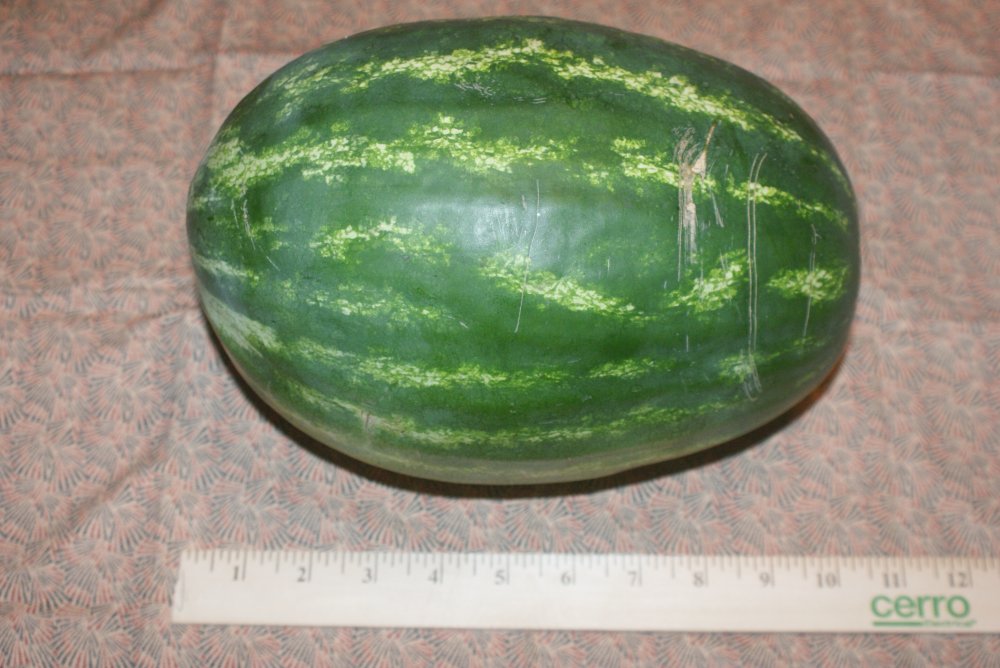 It only grew to 10 inches (should have been bigger/, but is huge for us! ) LOL. Here it is cut. It did not look ripe to me. Thought it would be darker orange and black seeds. Is this what your looked like? Not a melon eater I do not know if it was good. DH said it was fine. Very juicy. (We still have 2 more on the vine, should they wait?)