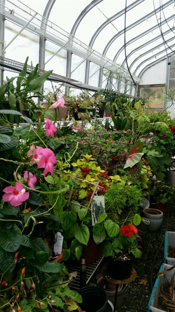 This year it is out of control. As you can see allot of these things should have been taken outside for the summer but that didn't happen this year. Usually when everything gets outside I will go in and really clean the inside. Pulling all wees in back corners and raking all the gravel to level it out.