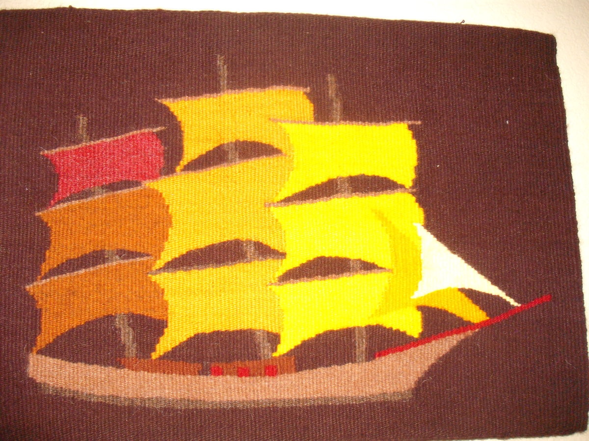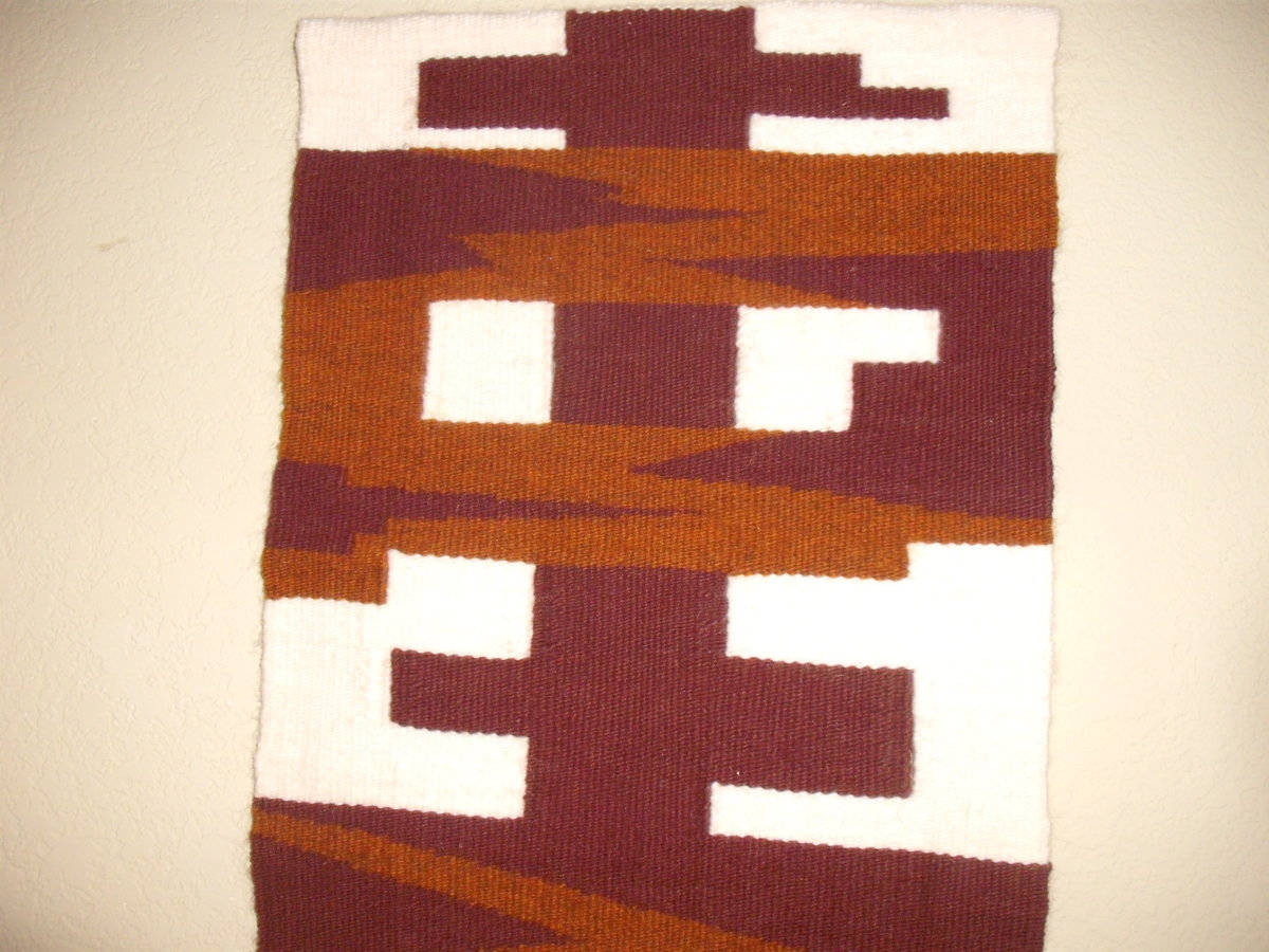 That last one was woven on what people often think of as loom with the shuttlecock going back and forth. The actual weaving goes fairly fast once it's set up. But the set-up can take 90% or more of the time. All the others were done with a "tapestry" technique. Set-up isn't too bad but the actual weaving is very slow and tedious.