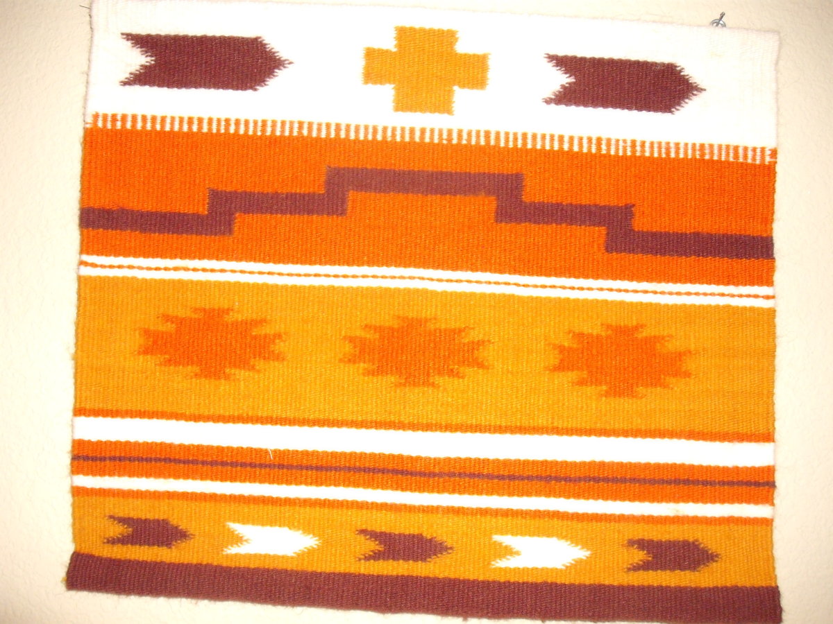 I took these today. I'm not going to try to find the old photos. With the flash these came out lighter than they really are but maybe you can get an idea of what they look like. Weaving takes a lot of time and you have to be meticulous, lots of detail work. There are a lot of different techniques and even different types of looms to master.