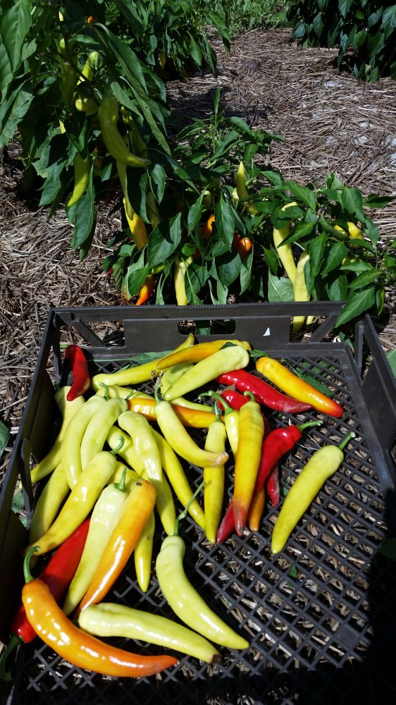 What I did with my chickens was to park them over the garden in their "tractor" coop last winter. I bought these portable electric netting fences and that gave them run of the whole garden. I was afraid I they would pack the soil, but it came out nice and crumbly after tilled. Definitely going to soil test this fall though, because I think I have something going on with possibly a magnesium deficiency. Anything I put Epsom salts on (tomatoes and peppers ) did great, but I had weird yellowed leaves on many other plants. Like this okra...