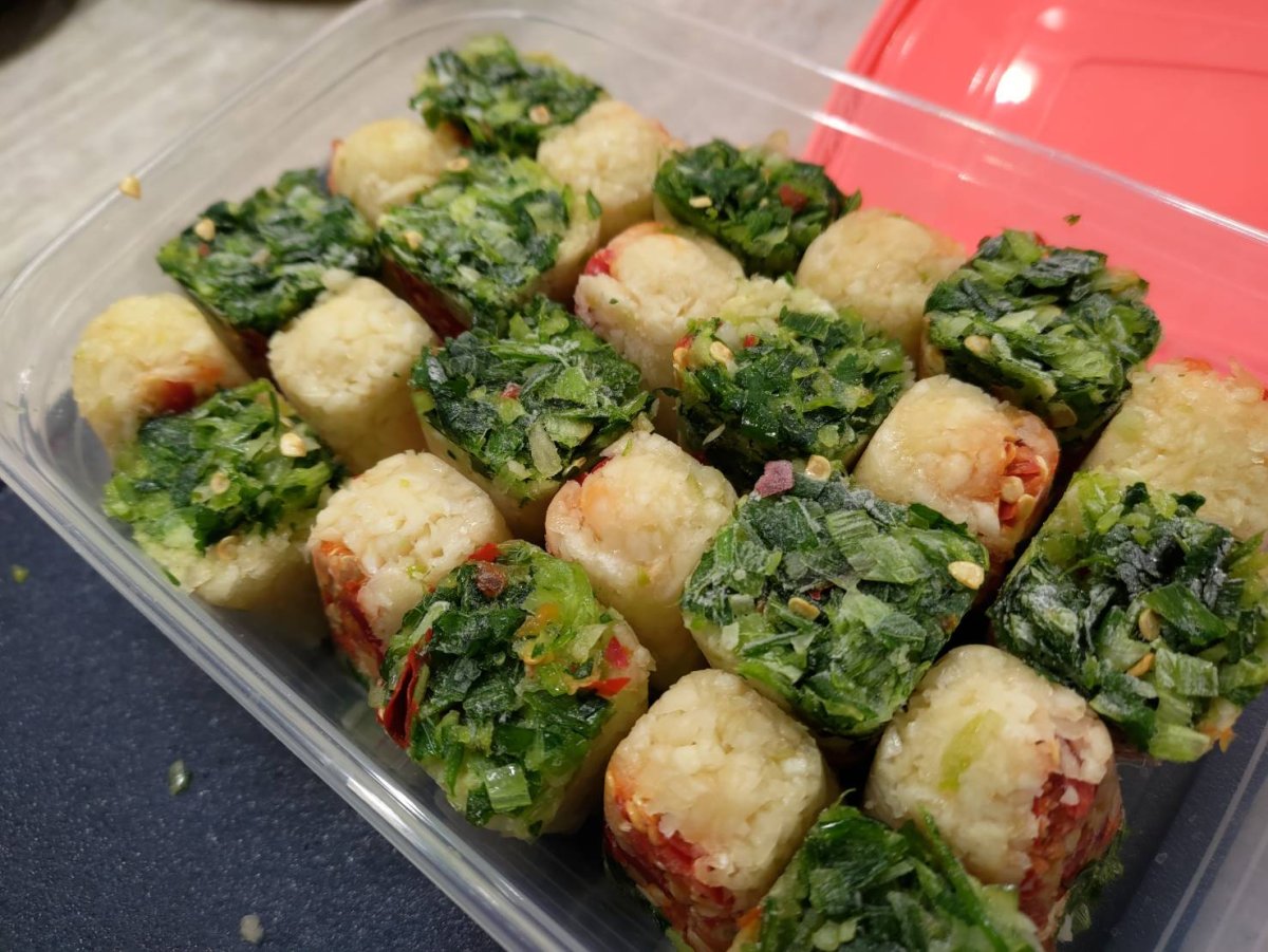 Vampires continue to be a real problem.I made some garlic cubes with chili, scallion, and coriander.