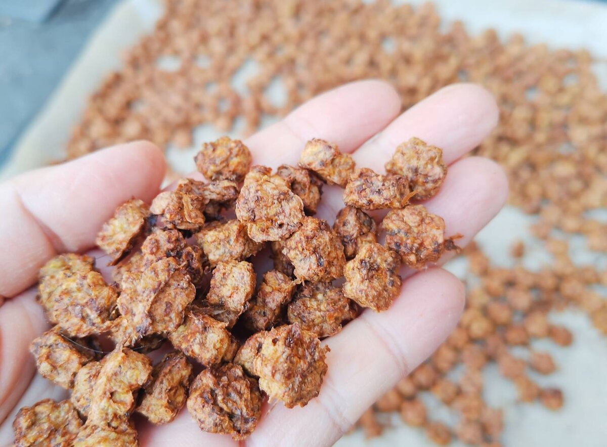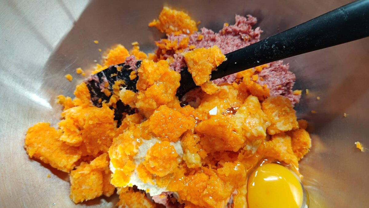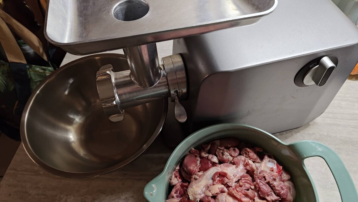 Chicken meaty bones (1Euro/kg) plus a bit chicken hearts, liver -- became meaty bone mash