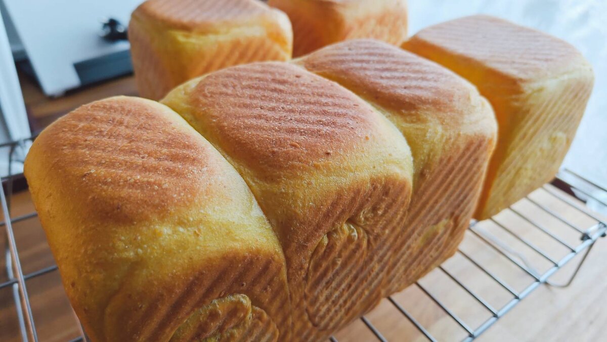 As for the toast, I use carrot juice to replace water, and the color is very charming. I also added the multi-grain flours.