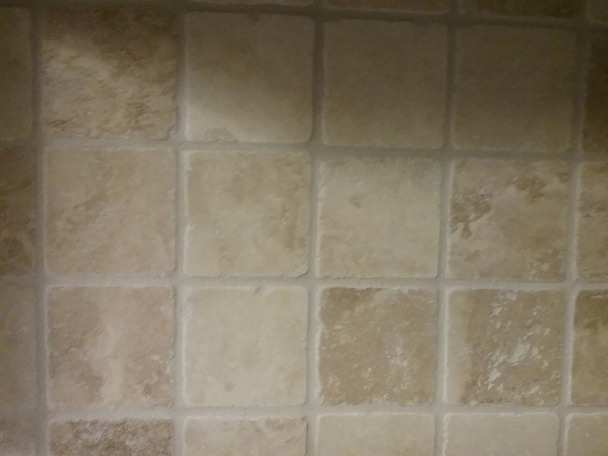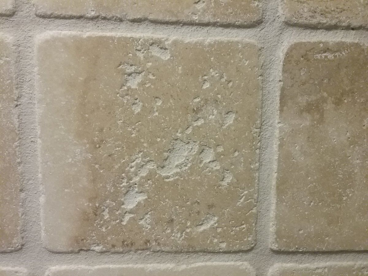 Here's what mine looks like behind the stove, you can see where the grout has filled the cavities.