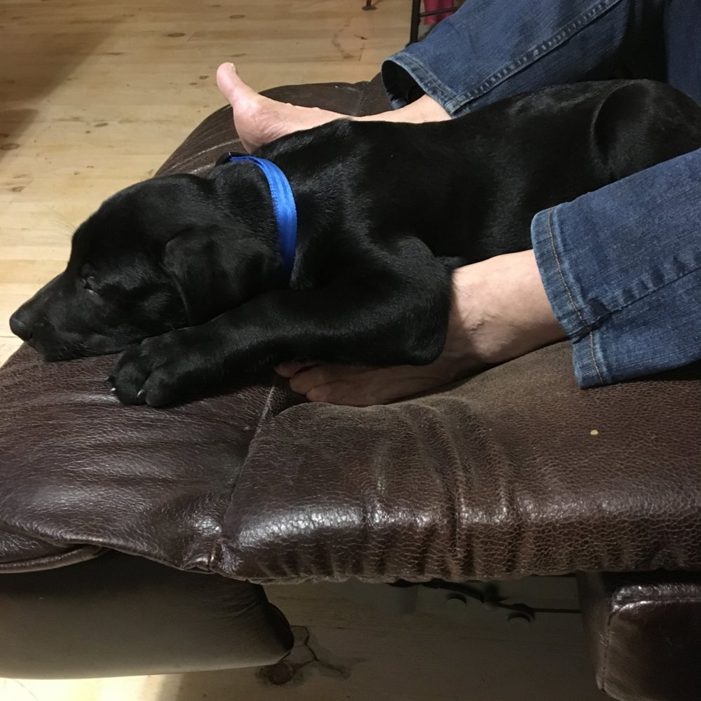 Since Parker died, we have been missing him so much. @Nyboy graciously offered a Golden Retriever puppy, but my husband desperately wanted a Lab, and only a black Lab. @Nyboy offered one of his Cavalier puppies and I was thrilled to accept. Our Aussie, Polly, died in my arms last summer and she was my girl. She took every step I did. She loved me fiercely and her going left a hole in my heart.