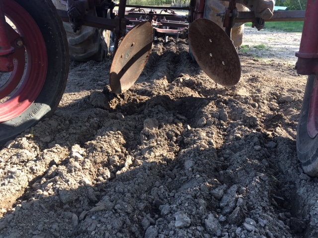 Got up Friday morning early, hooked the disc hiller up to the tractor, begin laying the first of many rows In the big garden. The beauty of the IH Letter series tractor was the wide assortment of attachments used in gardening. I looked for ever to find the factory front cultivator attachments just to form perfect rows.