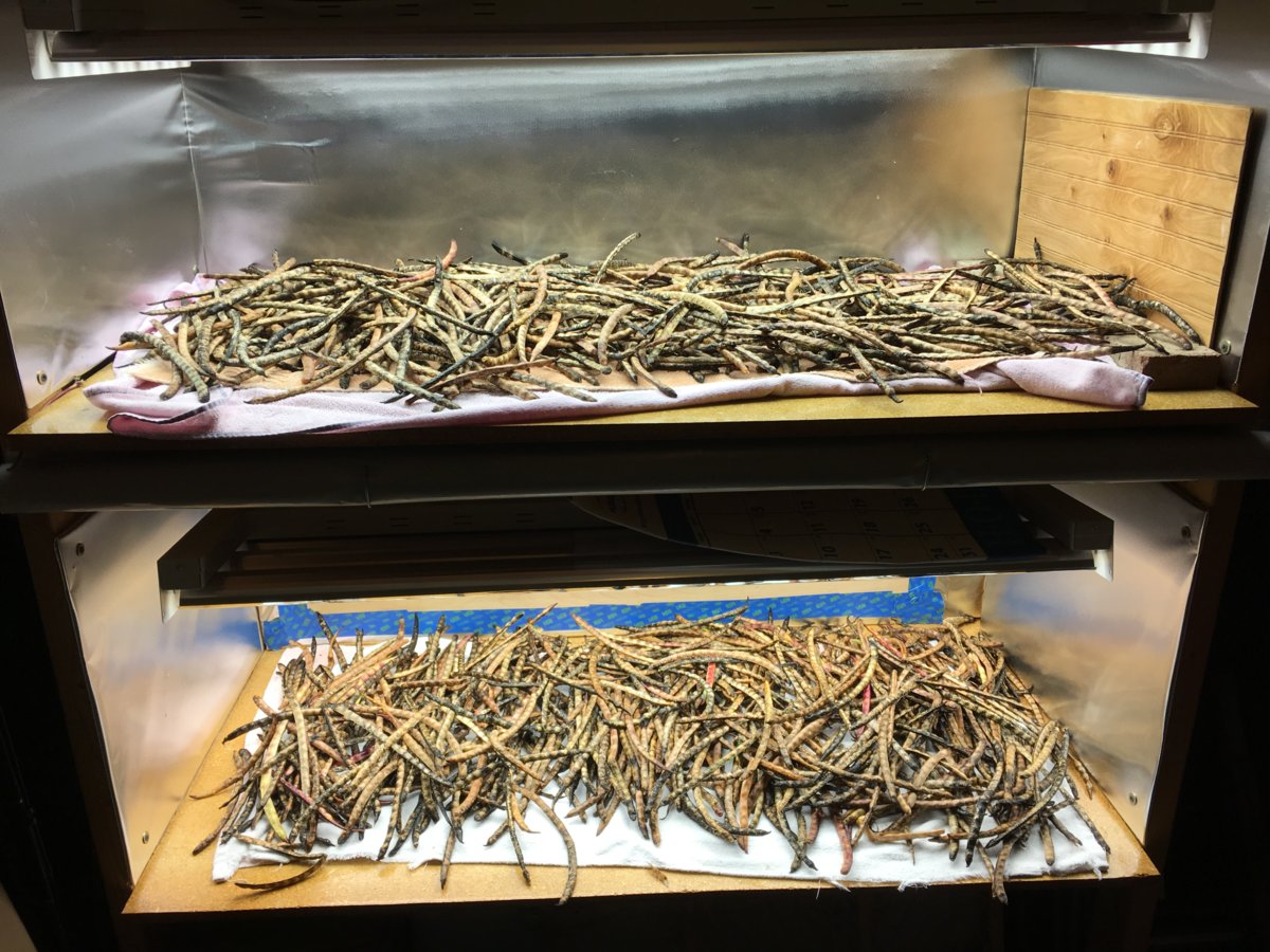 this morning went out and picked the lazy housewife beans 5 buckets worth... some of the pods had a little mold on the outside of them, so gave them a wash in a diluted bleach mixture. have them under lights and fans to dry them out. with all that rain lost a bit of them..