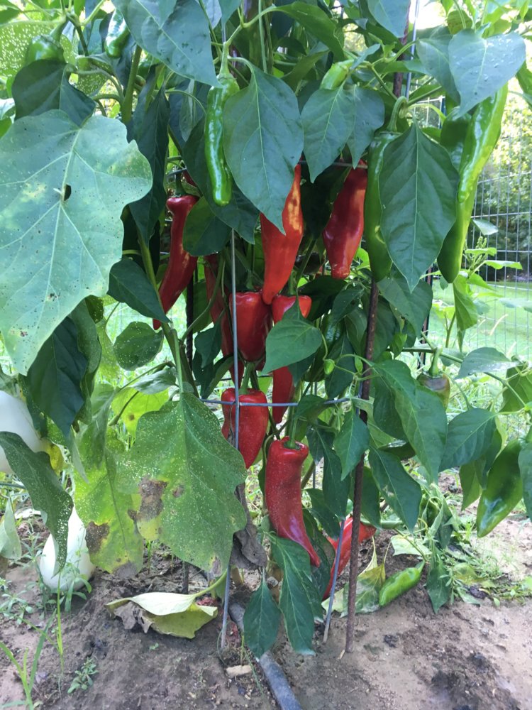 before spraying picked a nice bucket full of bell peppers and highlanders..