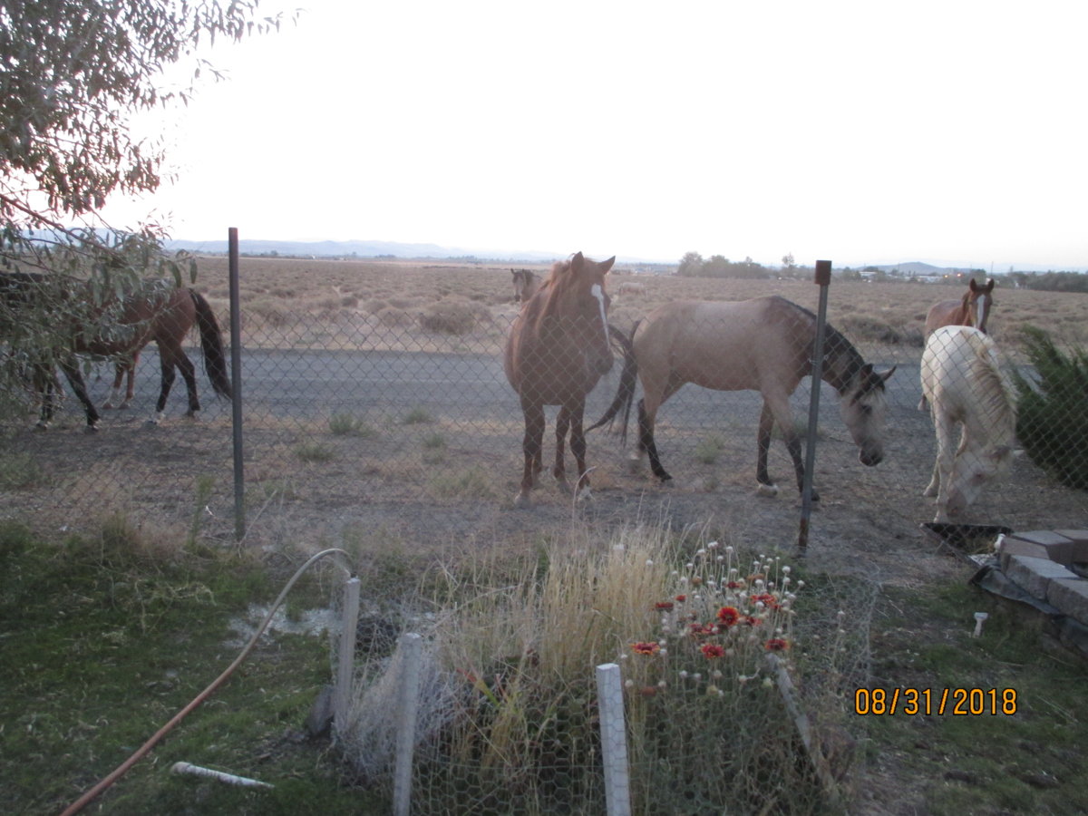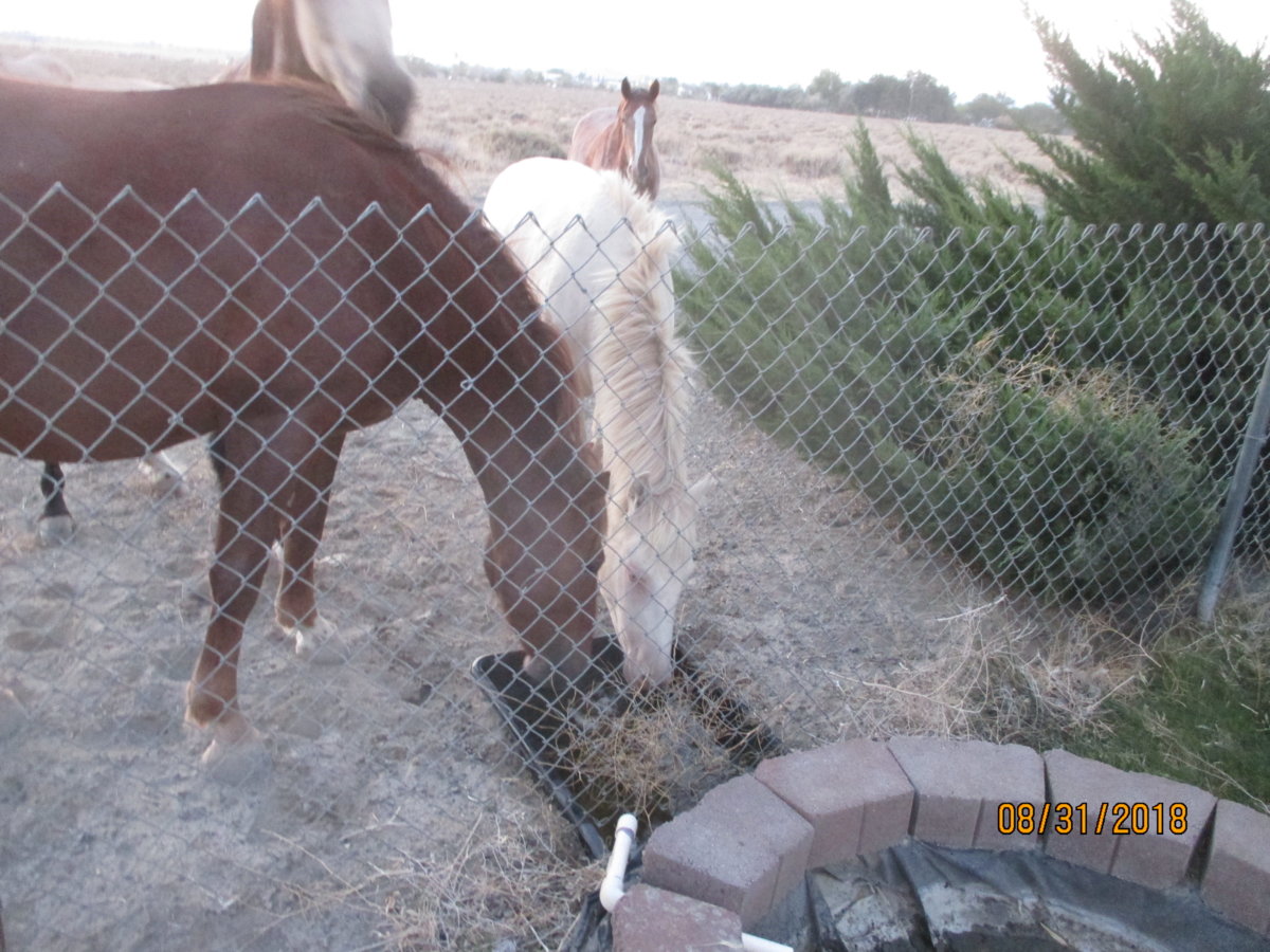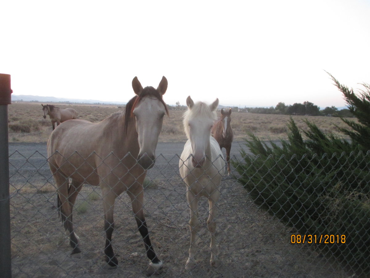 Younges daughter was off to work ~ and the band was outside having a drink and nibbling the Russian Olive ~ When we opened the gate for her ~ she got out of the car and the young one came over to her ~ she hugged it ~ they're unsure of me ~ but they like the girls ```