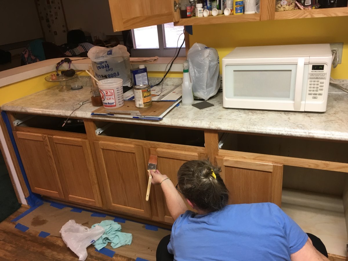 The DW is doing a great job finishing the cabinets. Can't wait to see the knobs when they arrive.what a rainy weekend so far since yesterday we have received 2" with more coming, the ground cant take anymore we have received 6.84" for the year..