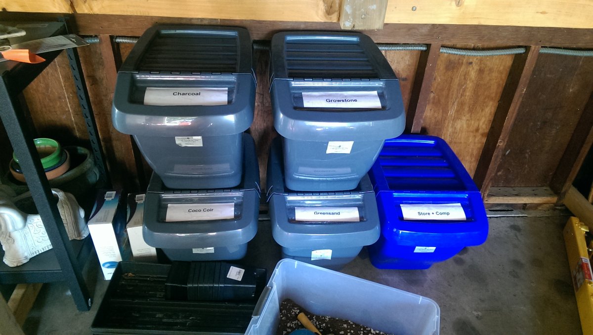 1. need bins to store base materials (stone, coir, sand, charcoal, ...)