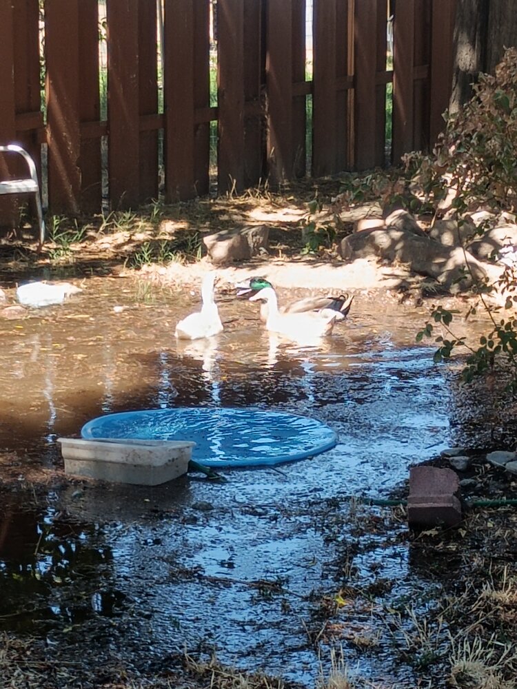 Those look like happy ducks. Sorry about your chickens.I'm so not happy right now. Two of my pullets died but I don't know if it was the heat or the Cockerel. I'm about ready to go home and just process all 4 of them and be done. My husband sent me some pictures and this is a good one View attachment 77205