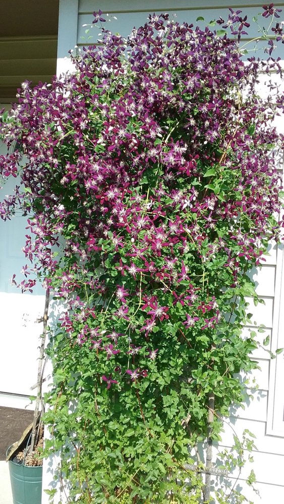 One of my favorite clems. Sweet Summer Love. Finally got control of the grasshoppers that usually defoliate it.