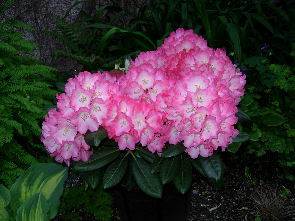 I need to replace a rhodie in a bed of other rhodies, they are Hachmanns Charmant, which I've only been able to locate as liners from growers. I need something in at least a 3 gallon size pot.
