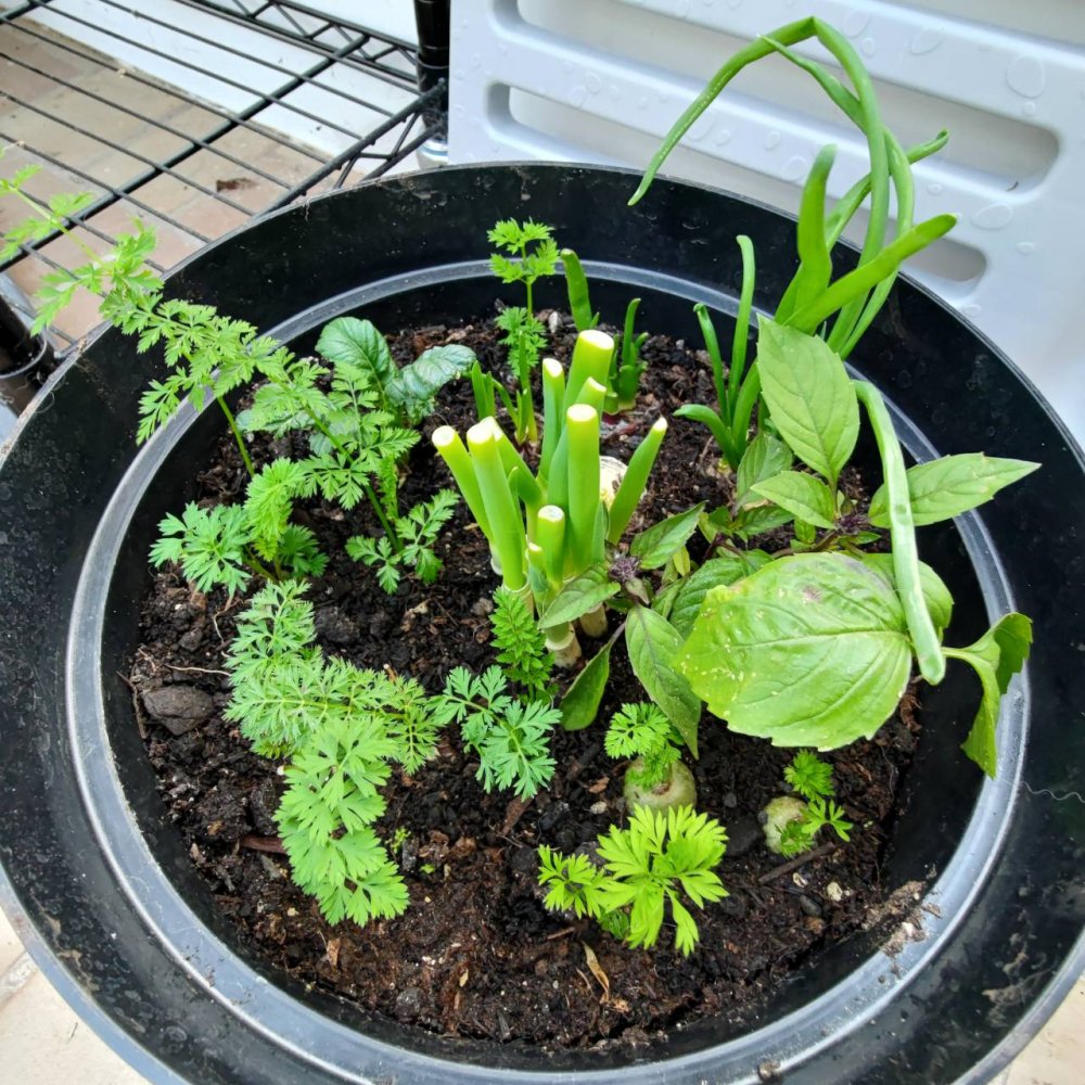 The earlier ones are transplanted on the top of my chicken food tower. Most of them are frost-hardy, so I don't need to worry about them.