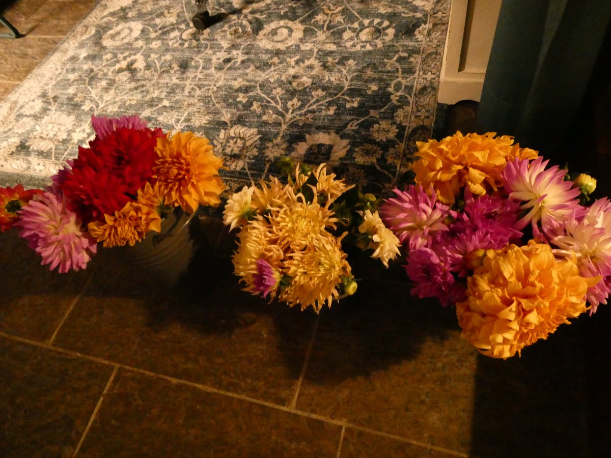 Another Frost is coming tonight, so although it's dark now, I will cut some more Dahlias inside later. Earlier in the afternoon, I had already picked some veggies for the weekend.