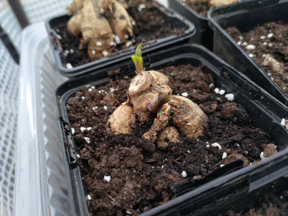 Chive is one of the plants I like very much - tasty, lovely flowers, good for pollinators. I dug another two clumps and cleaned them up. After trimming the roots, soaking in water with a bit of liquid tomato fertilizer for 30 mins, and repotting them in the 9cm pots, I harvested the upper parts. Now, 8 smaller clumps are sitting on the outdoor shelf. I will transplant them a few weeks after we re-organize the chicken runs.
