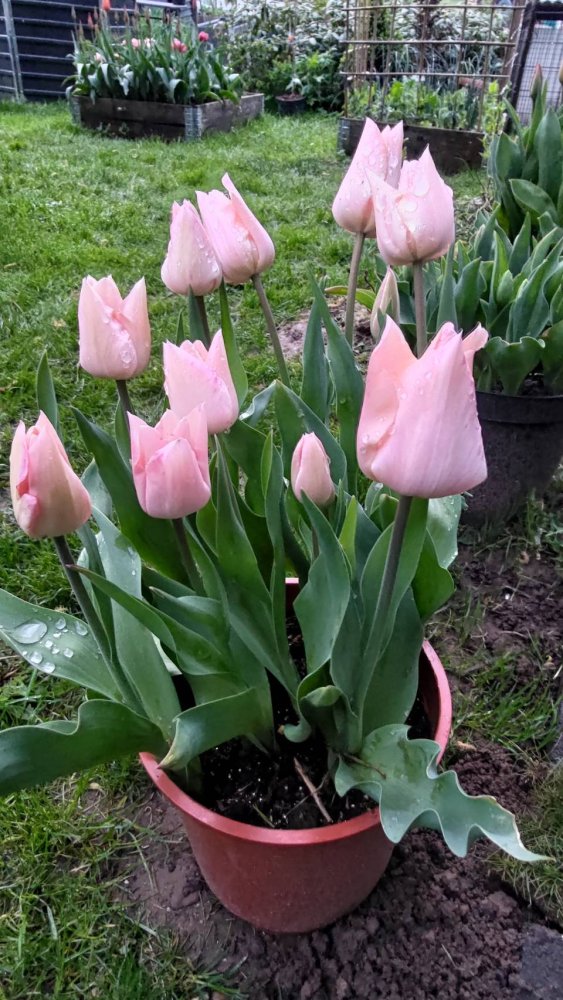 Dear Rhodie,Phaedra: I was thinking of you this weekend. You see, I purchased some clearance tulips from here and there. Enjoyed the blooms and now they are yellowing. They are all in their purchased pots.