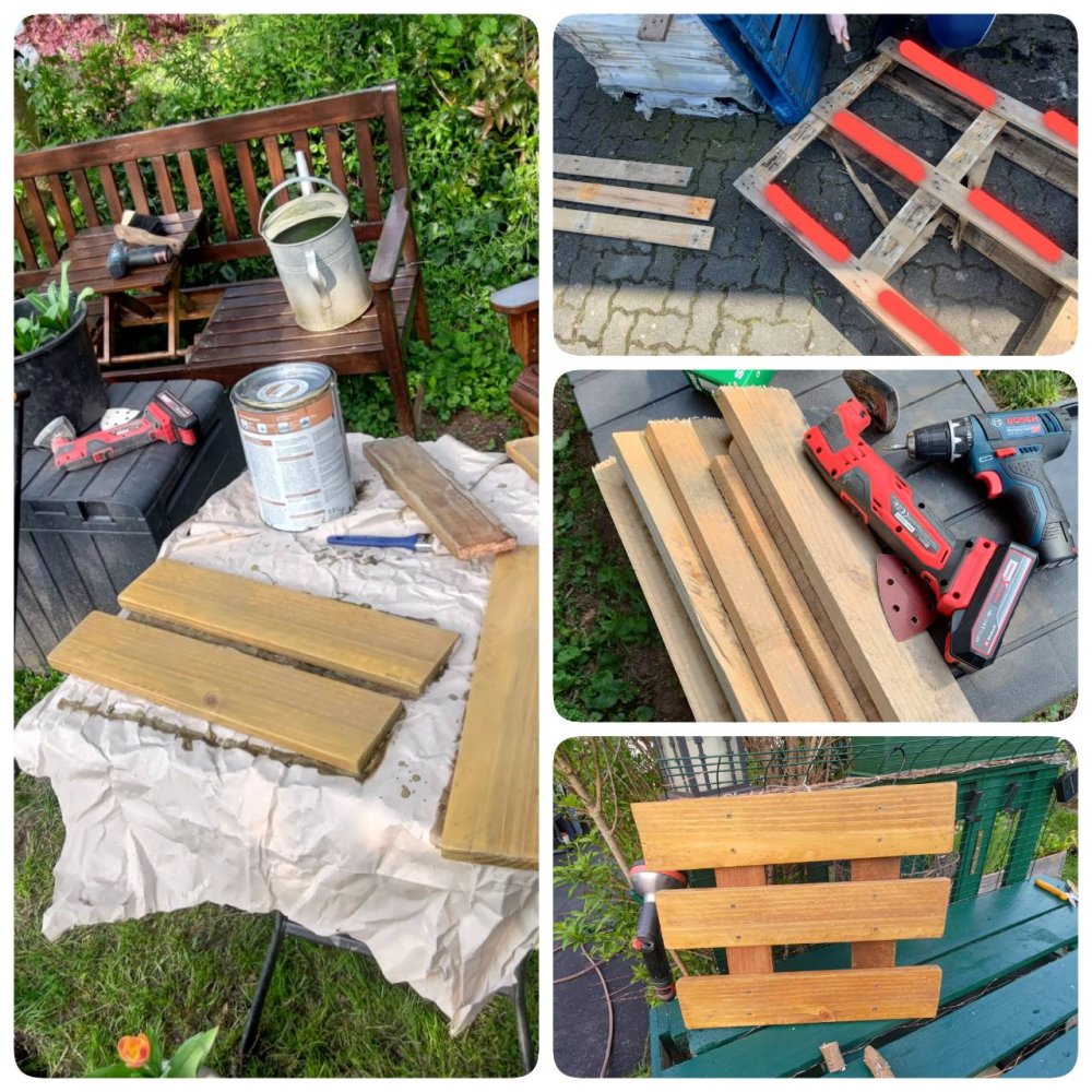 We cut an old blue pallet (they are free of charge and with all kinds of colors or conditions) today and built a mini tomato hoop tunnel attached to the chicken run.