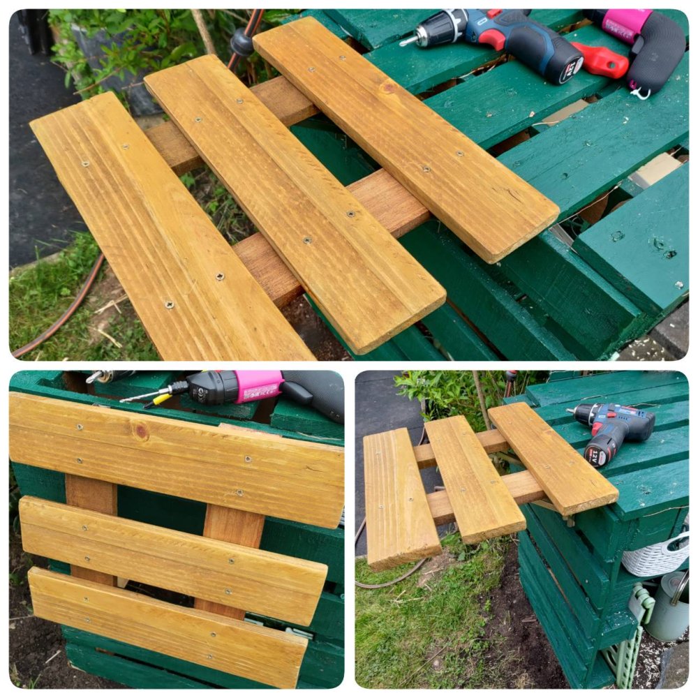 And I finished my first hand-made foldable table - the wood was recycled from a broken pallet, sanded, painted, and re-assembled.