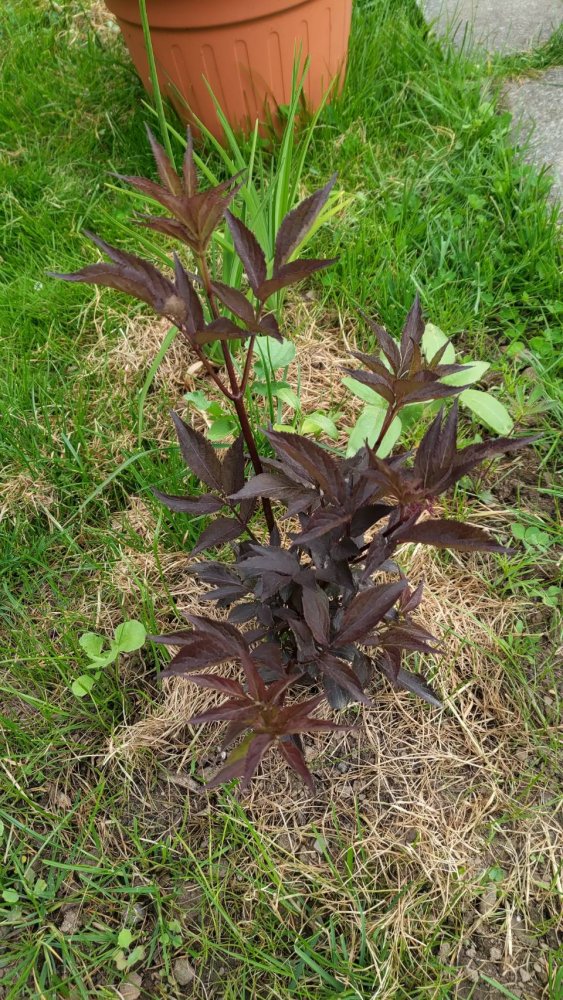 Black elderberry plants that I propagated from cuttings last year are adapting well and show some flowers. I already removed the flowers after taking photos.