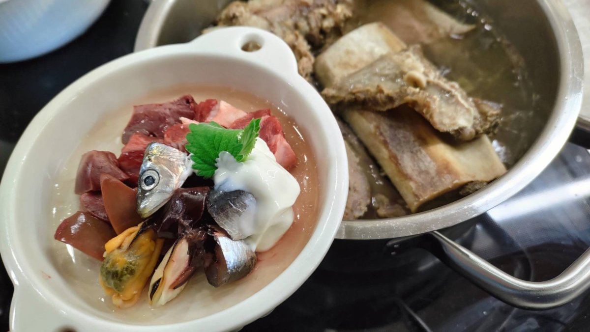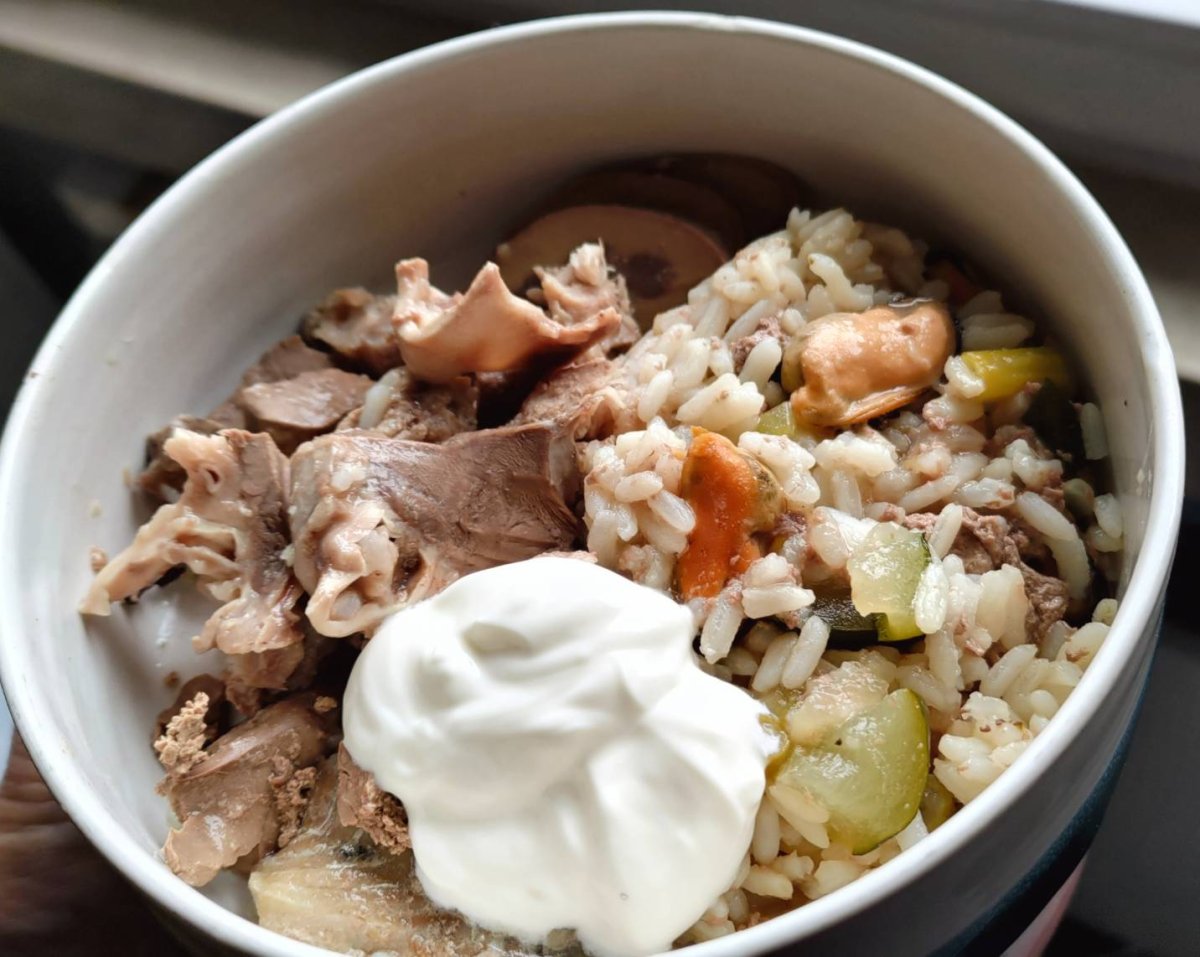 We had our brunch in the garden shed this morning, and both dogs stayed with us.