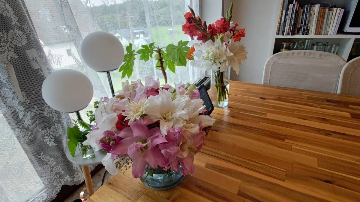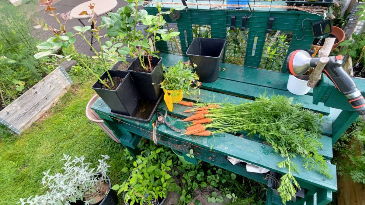 And the flower bed I just arranged two weeks ago -- as expected, the plants adapted well. We have one more lovely corner that offers flowers, herbs, berries, and veggies.