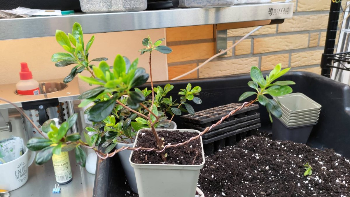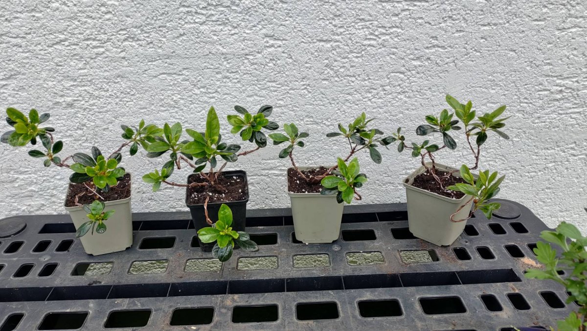 After approximately four months, the four Azalea Bonsai trees have flourished, displaying increased vitality. Their foliage has multiplied, and their stems exhibit newfound resilience.