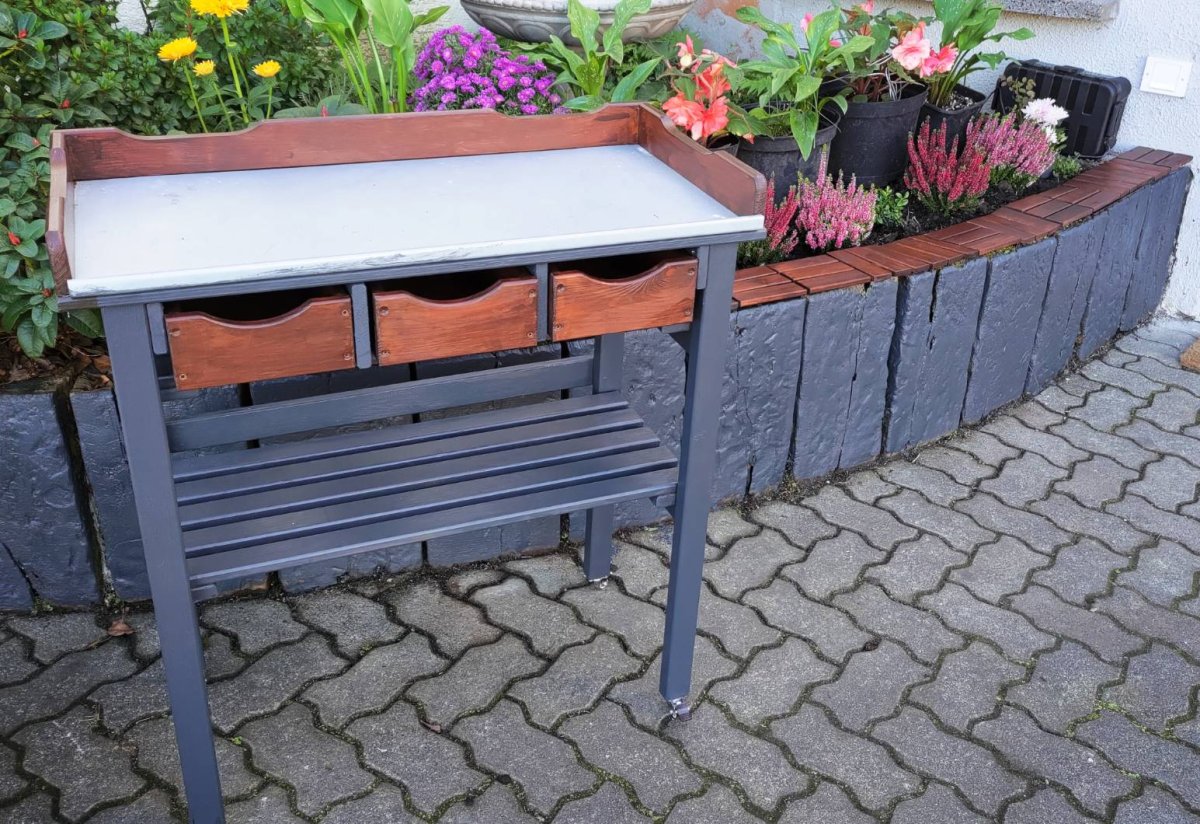 Then, I added wheels to the small, old potting table - so it can become a multi-functional tool.