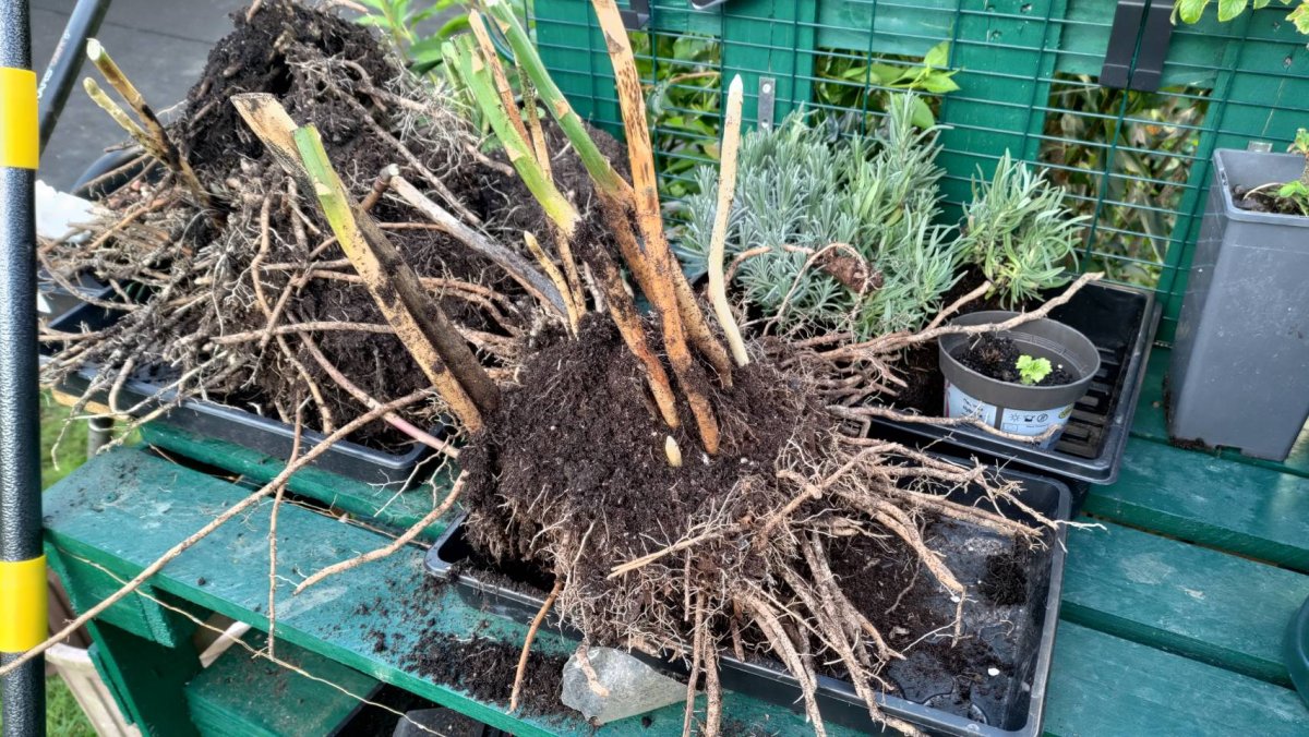 When those Irises reached us, I don't have ideal locations to plant them yet. I put them in the 13cm nursery pots. So far, it seems to be a nice solution. Their roots develop well. Now, the annuals are gradually removed, and the Irises get their places.