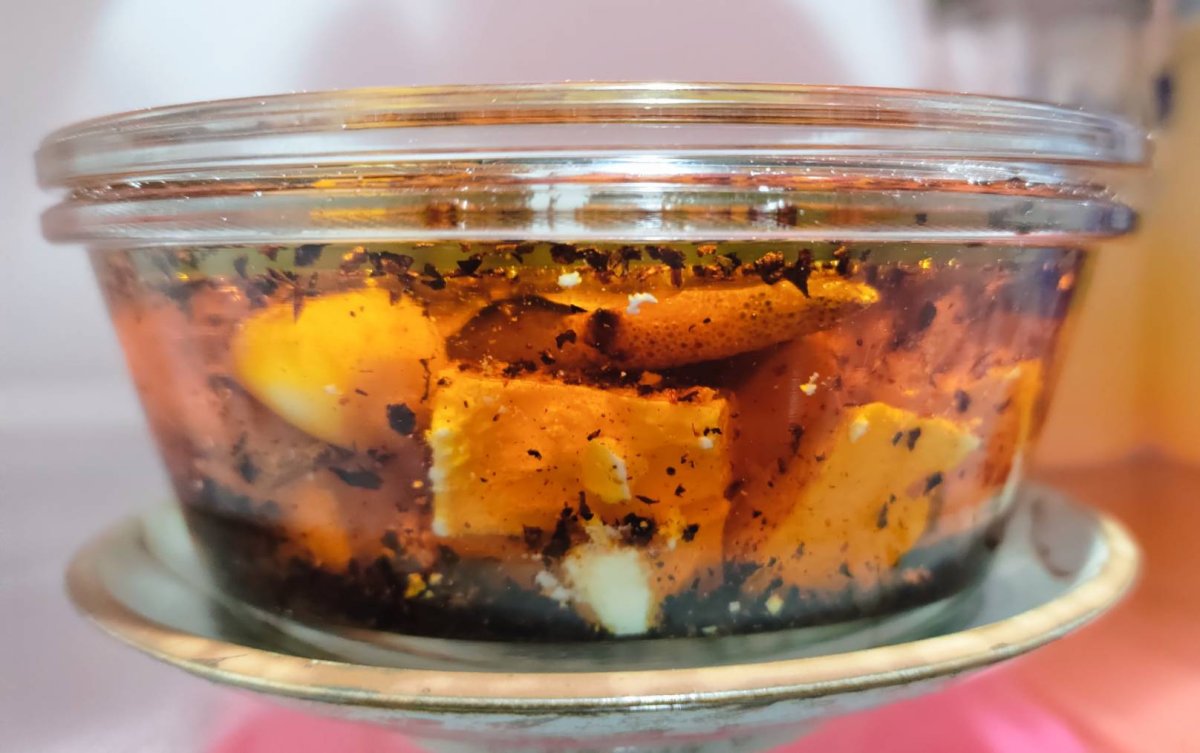 The classes are going on. The best thing of online learning is, especially culinary courses, you can pause anytime and run to the kitchen when you have just everything you need at hands. I made two items last night while watching the videos - smoky marinated feta