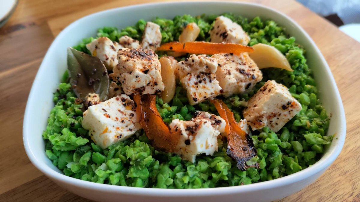 Pea Spread with Smoky Marinated Feta