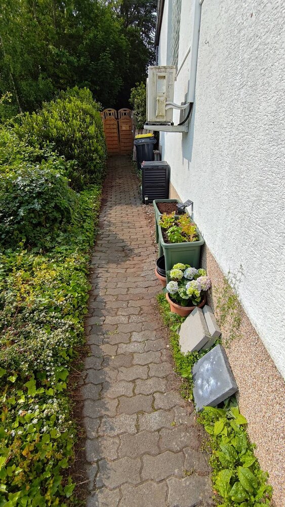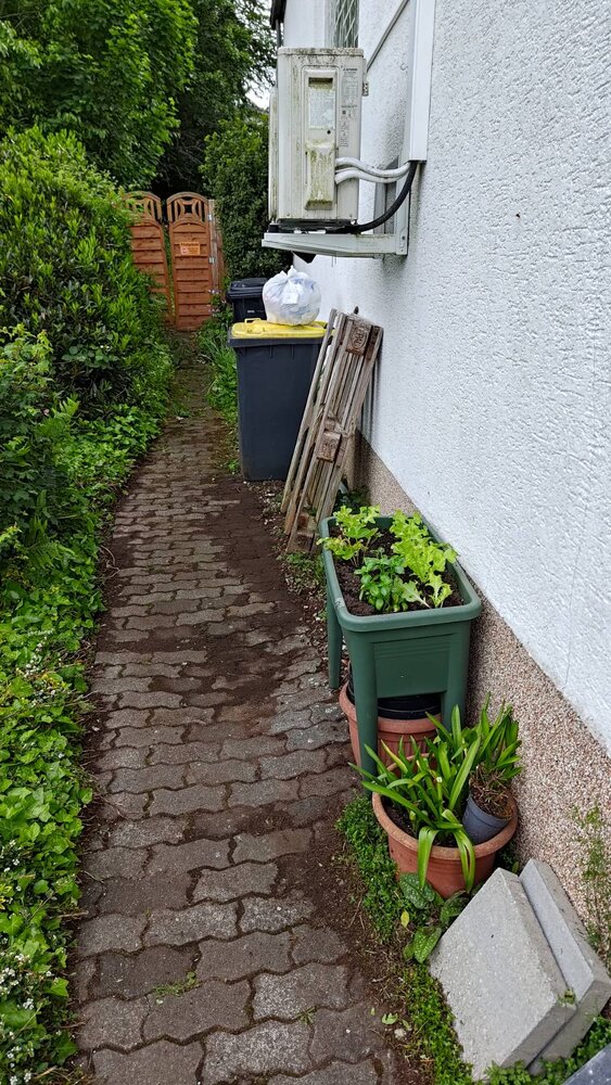 These two days, I worked in this small pathway to the main garden. I never really paid attention to this pathway since we move in. It was taken as a place for the trash bins, ladder, pallets, and plants to die down.