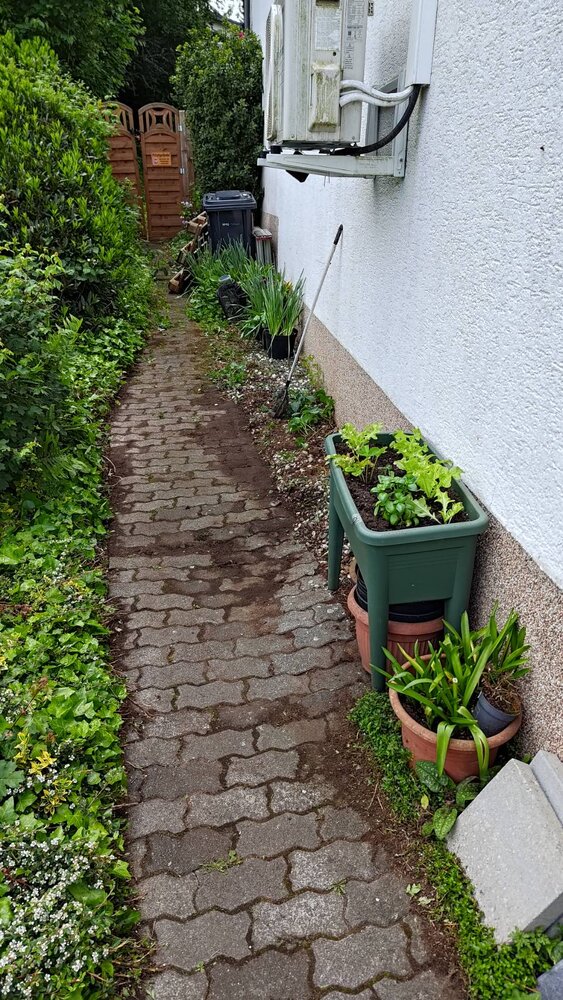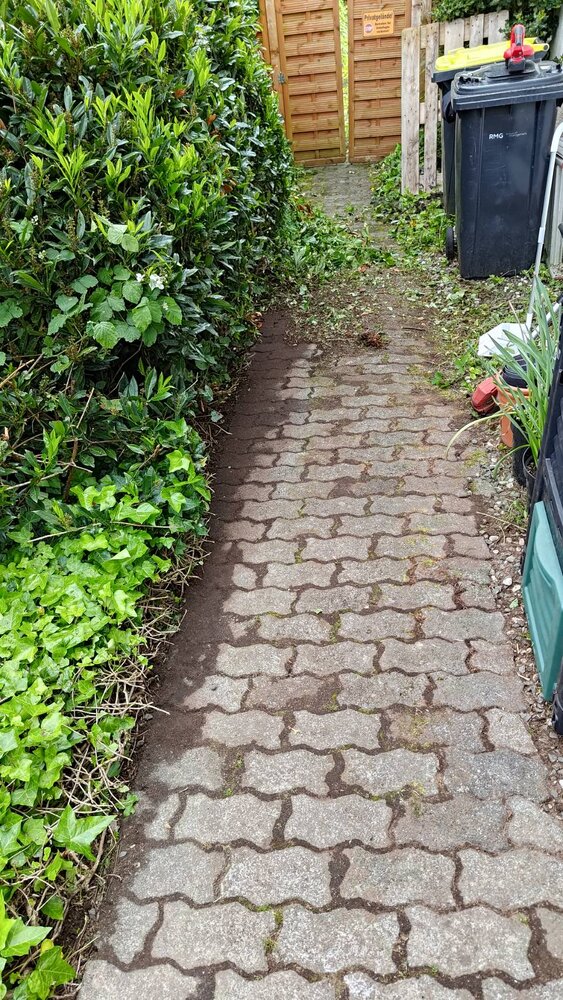 DH was responsible for this pathway, but it's a meaningless chore for him. What he did is cutting the hedge, with minimum effort to clean the debris. It's totally fine, as I didn't spend any minute here, his effort counts.