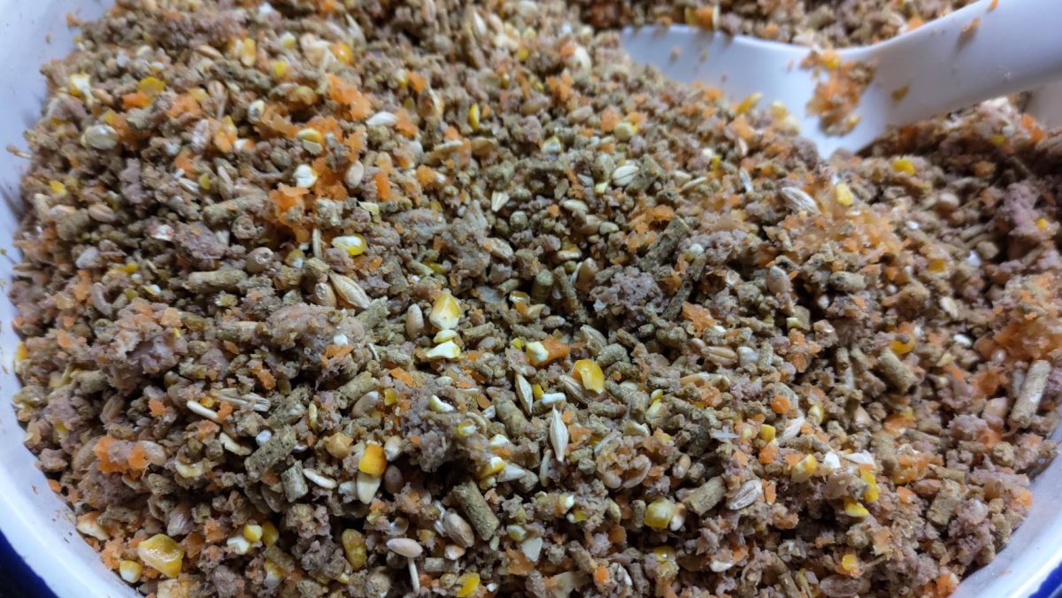 Bobo and Momo have their gourmet brunch, too. Very safe and nutritious for all of them - it's worthy to collect and do the grinding once per week.
