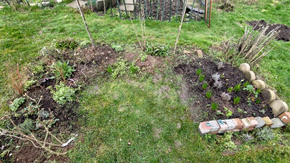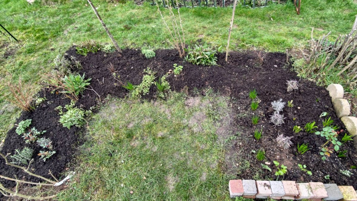 Everything looks a bit sad and blue in February and early March, after a cold and wet winter. However, after checking closely, most of the perennials in this bed are growing nicely. Time to give them a boost.